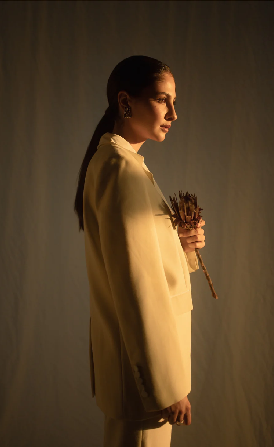 Die Anzugjacke Hazel ist ein umwerfendes, maßgeschneidertes Design mit doppeltem Revers und schickem Wickelgürtel. Stylen...