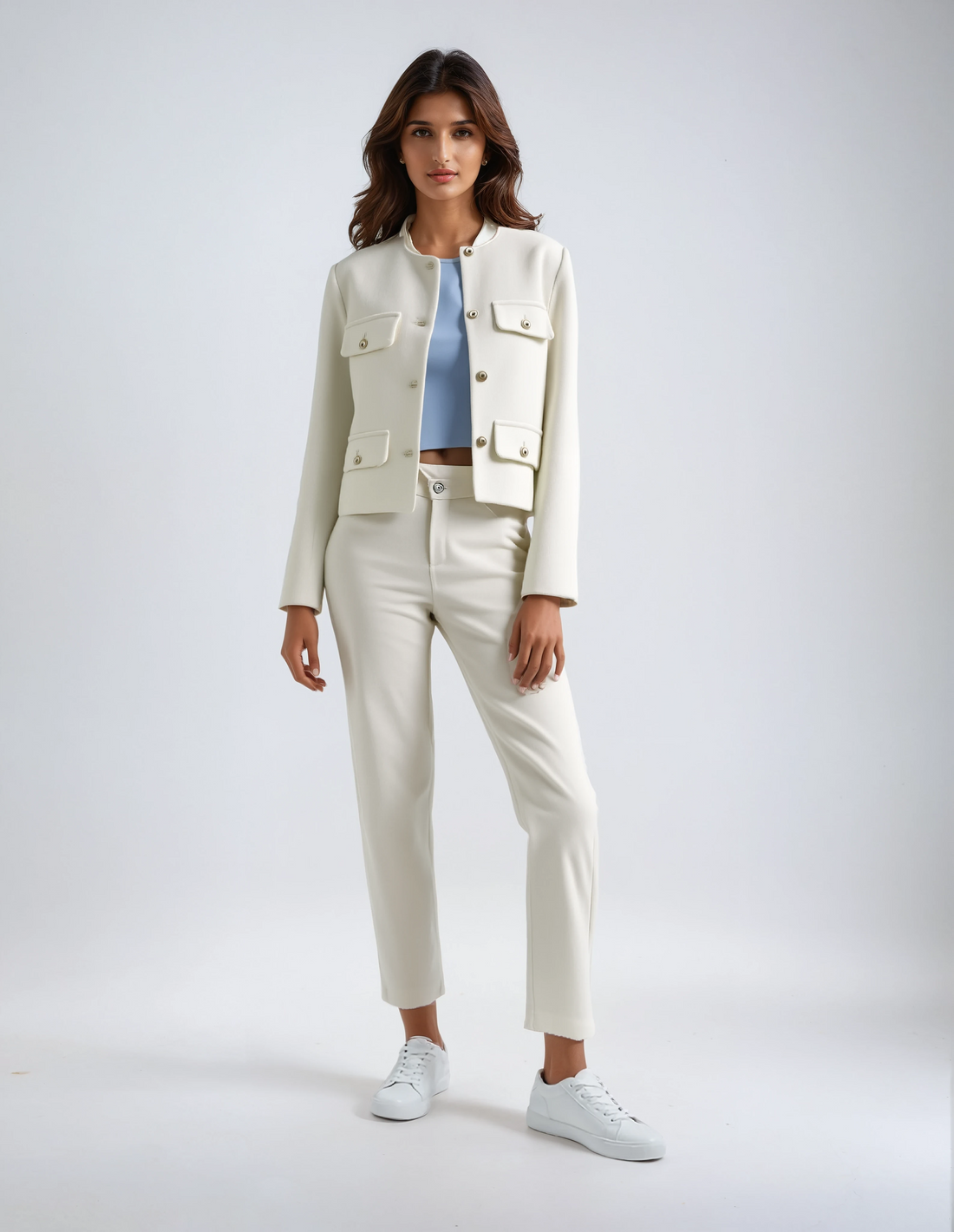 Verleihen Sie Ihrer Garderobe einen Hauch von Raffinesse mit der Madam Berlin Tweed Cropped Jacke....