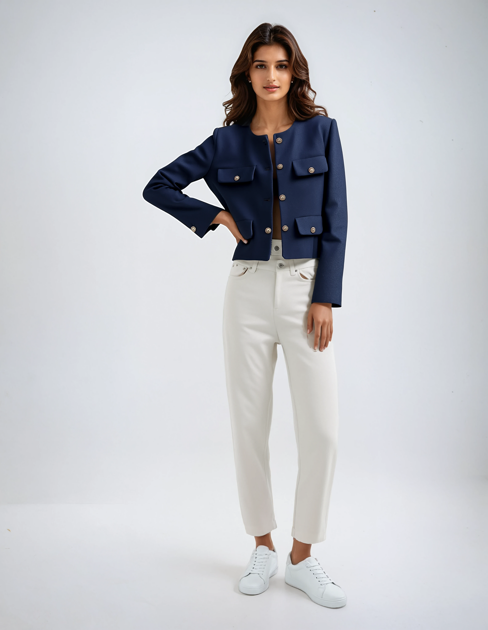 Die Madam Berlin Tweed Cropped Jacke ist ideal für die modebewusste Frau, die sowohl Stil als auch Komfort sucht. Die elegante Verarbeitung macht sie perfekt für einen Büro-Look oder ein schickes Abendoutfit. Kombinieren Sie sie mit einer eleganten Hose, einem schicken Kleid oder sogar einem legeren T-Shirt für einen vielseitigen, raffinierten Look.